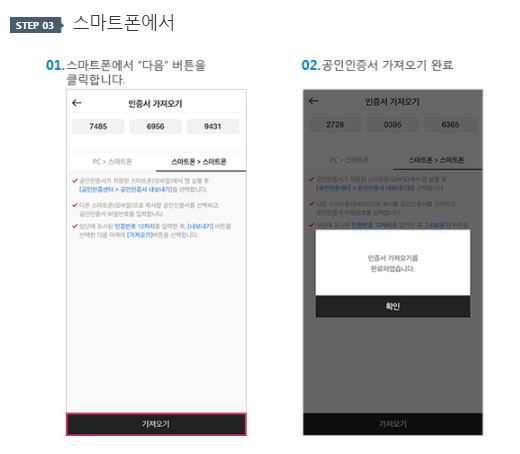 증권용 공인인증서 복사 방법 (컴퓨터 → 휴대폰)